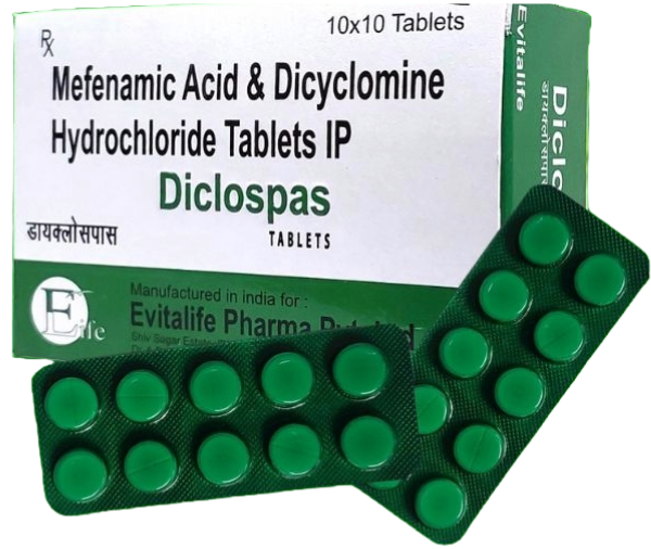 Mefenamic Acid 250mg.+ Dicyclomine HCl 10mg. Tablets