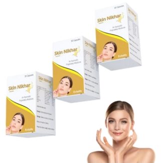 SKIN NIKHAR Capsules are specially formulated using traditional Ayurvedic herbs that address internal causes of skin problems such as toxins, poor digestion, and hormonal imbalance. The herbs work synergistically to cleanse the blood, reduce inflammation, and rejuvenate the skin tissues. Regular use of this capsule supports clear, soft, and youthful skin while minimizing dark spots, blemishes, and acne marks. It also helps in maintaining a natural glow and balancing sebum production for overall skin health. 🌿 Benefits: Promotes clear, glowing, and radiant skin Purifies blood and removes toxins from the body Helps reduce acne, pimples, and pigmentation Improves complexion and skin texture Supports liver and digestive function for internal cleansing Natural and chemical-free formula
