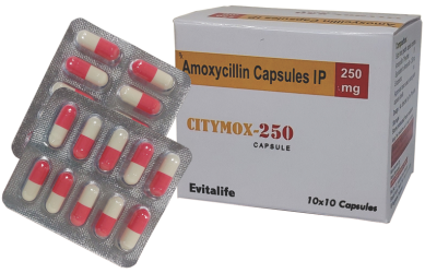 CITYMOX-250 contains Amoxycillin 250 mg, a semi-synthetic antibiotic belonging to the penicillin (beta-lactam) group. It works by inhibiting bacterial cell wall synthesis, thereby killing bacteria and preventing their growth. CITYMOX-250 is highly effective against both Gram-positive and Gram-negative organisms, making it one of the most widely prescribed antibiotics in clinical practice.
