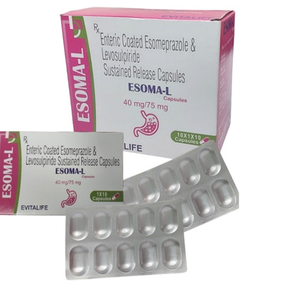 ESOMA-L Capsules are a dual-action gastro-protective formulation that offers sustained relief from acid-related disorders. The combination of Esomeprazole (a proton pump inhibitor) and Levosulpiride (a prokinetic agent) ensures comprehensive management of upper gastrointestinal issues.