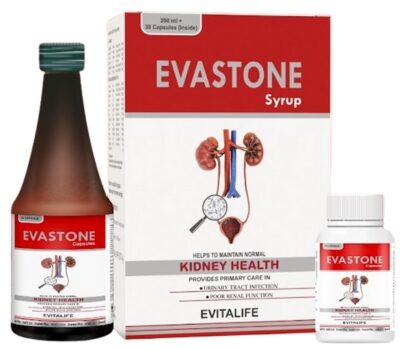 EVASTONE SYRUP + CAPSULES is a powerful dual herbal formulation designed to promote kidney health and aid in the prevention and management of kidney stones. The combination of Punarnava, Varun, Pashan Bhed, Shilajeet, and other traditional herbs helps dissolve stones naturally, improve urinary flow, reduce inflammation, and support detoxification. This regimen provides holistic care for the urinary tract, promoting overall renal wellness.