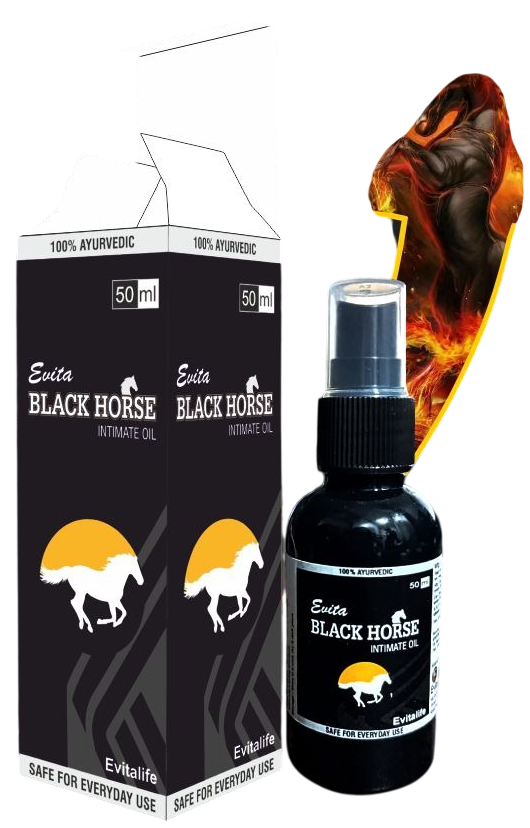 EVITA BLACK HORSE INTIMATE OIL is an Ayurvedic proprietary formulation designed specifically for men to support intimate health and wellness. Infused with powerful herbal ingredients traditionally known for their aphrodisiac, revitalizing, and circulation-boosting properties, this oil improves blood flow, promotes tissue strength, and enhances confidence. Regular external massage helps boost stamina, reduce fatigue, and support overall sexual performance naturally — without harmful chemicals or side effects. The oil is fast-absorbing and non-sticky, making it ideal for daily use.