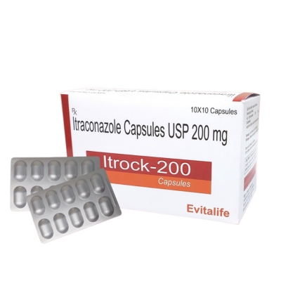 ITROCK-200 Capsules are formulated with Itraconazole 200 mg, a powerful triazole antifungal that acts by inhibiting the synthesis of ergosterol, an essential component of the fungal cell membrane. This action leads to the breakdown of fungal cell structure, helping eliminate infection from the root.