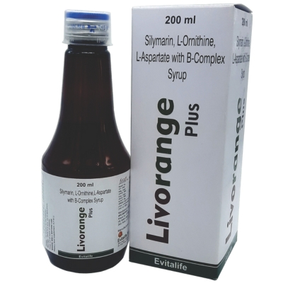 LIVORANGE-PLUS is a nutraceutical liver tonic that combines Silymarin for antioxidant protection, L-Ornithine L-Aspartate (LOLA) for liver detoxification and ammonia reduction, and essential B-vitamins, Vitamin B12, D-Panthenol, and protein to enhance metabolism and energy. This syrup supports liver regeneration, improves appetite, reduces fatigue, and promotes overall vitality, making it ideal for individuals with liver stress, poor appetite, or post-therapy recovery.