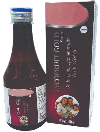 LYCOFRUIT GOLD is a nutraceutical syrup formulated with Coenzyme Q10, a vital antioxidant that supports cellular energy production and cardiovascular health. Lycopene provides potent antioxidant protection, while Zinc and added multivitamins enhance immunity, metabolic function, and overall vitality. This syrup is ideal for adults and adolescents seeking natural support for energy, immunity, and overall well-being.