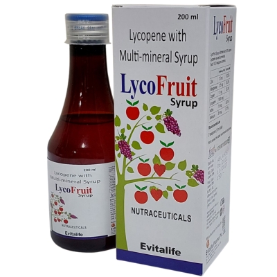 LYCOFRUIT is a nutraceutical syrup combining Lycopene, a potent antioxidant, with essential minerals like Zinc, Selenium, and Iodine. This formulation helps combat oxidative stress, supports immune function, and promotes reproductive and thyroid health. The multi-mineral base ensures proper nutrient balance, making LYCOFRUIT ideal for adults seeking overall wellness, vitality, and protection against micronutrient deficiencies.