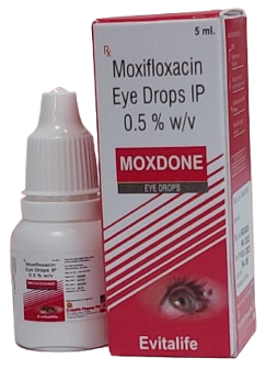 MOXDONE Eye Drop contains Moxifloxacin, a fourth-generation fluoroquinolone antibiotic used topically in the eye to treat bacterial conjunctivitis and other susceptible eye infections. It works by inhibiting bacterial DNA replication, effectively stopping bacterial growth. This sterile ophthalmic solution provides broad-spectrum antibacterial coverage and rapid relief from infection-related symptoms such as redness, discharge, and irritation.