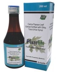 PLATELIFE combines Carica Papaya Leaf Extract, known for promoting platelet production, with Giloy and Tulsi, which strengthen immunity and provide antioxidant protection. Kiwi extract enriches the syrup with Vitamin C, aiding overall health and recovery.
