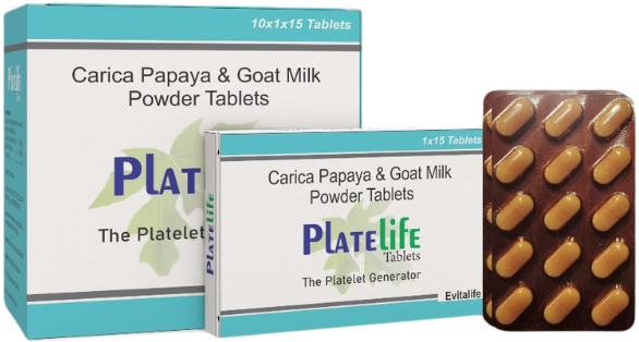PLATELIFE is a herbal-nutraceutical formulation containing Carica Papaya Leaf Extract and Goat Milk Powder, known for their immune-boosting and platelet-enhancing properties. It is widely used as a supportive therapy in conditions like dengue, chikungunya, malaria, and viral fevers where platelet count drops. Goat milk powder enriches nutrition, promotes faster recovery, and supports overall health.